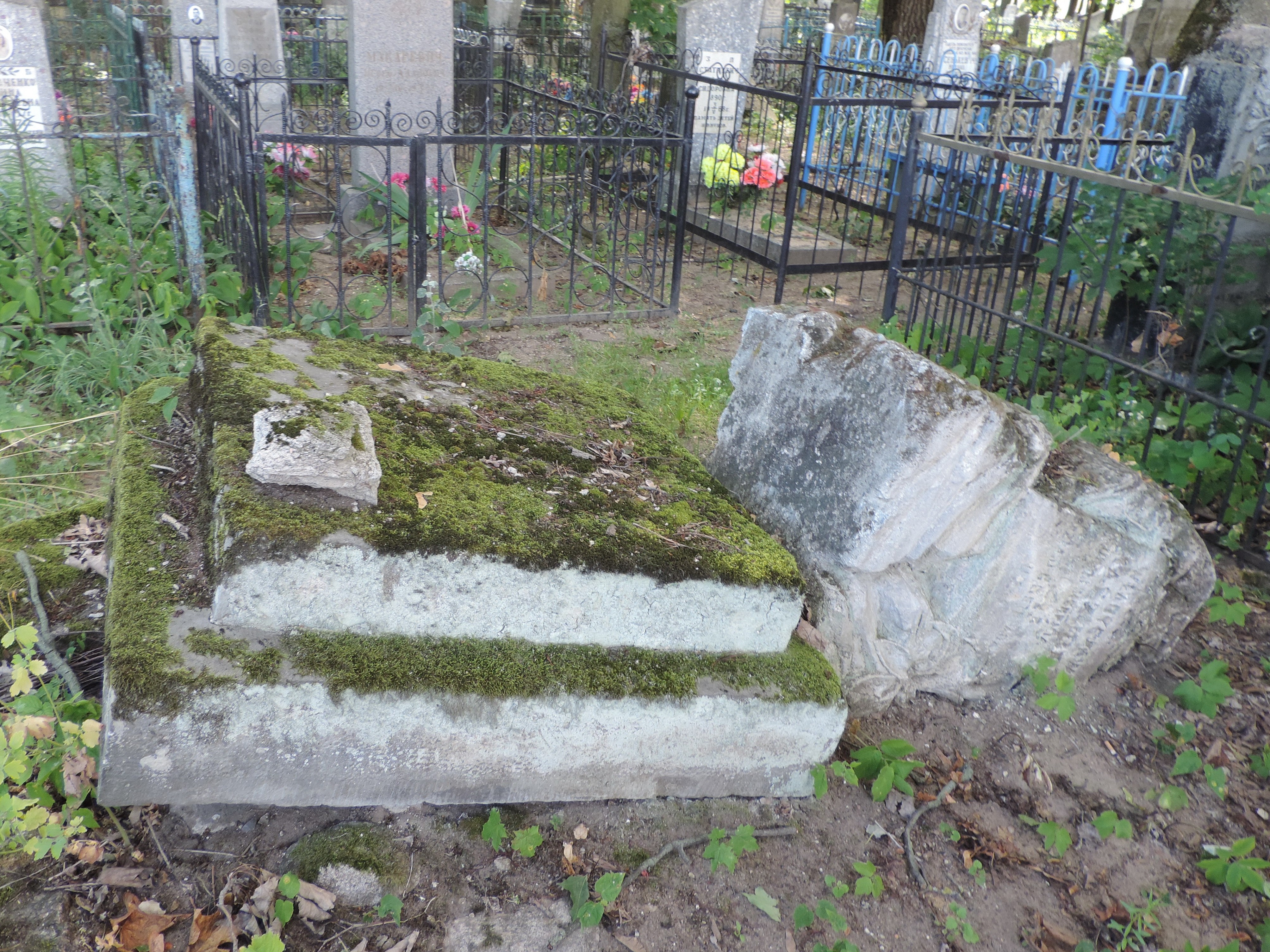 Памятник лежит около стены брамы-часовни.